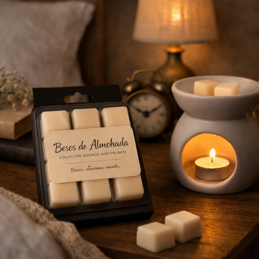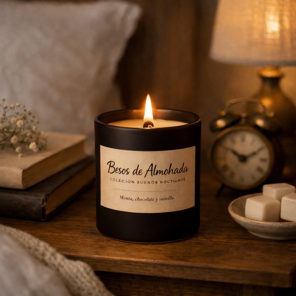 Besos de Almohada nace como una vela pensada para el descanso, para acompañar los últimos minutos del día y convertir la noche en un ritual.