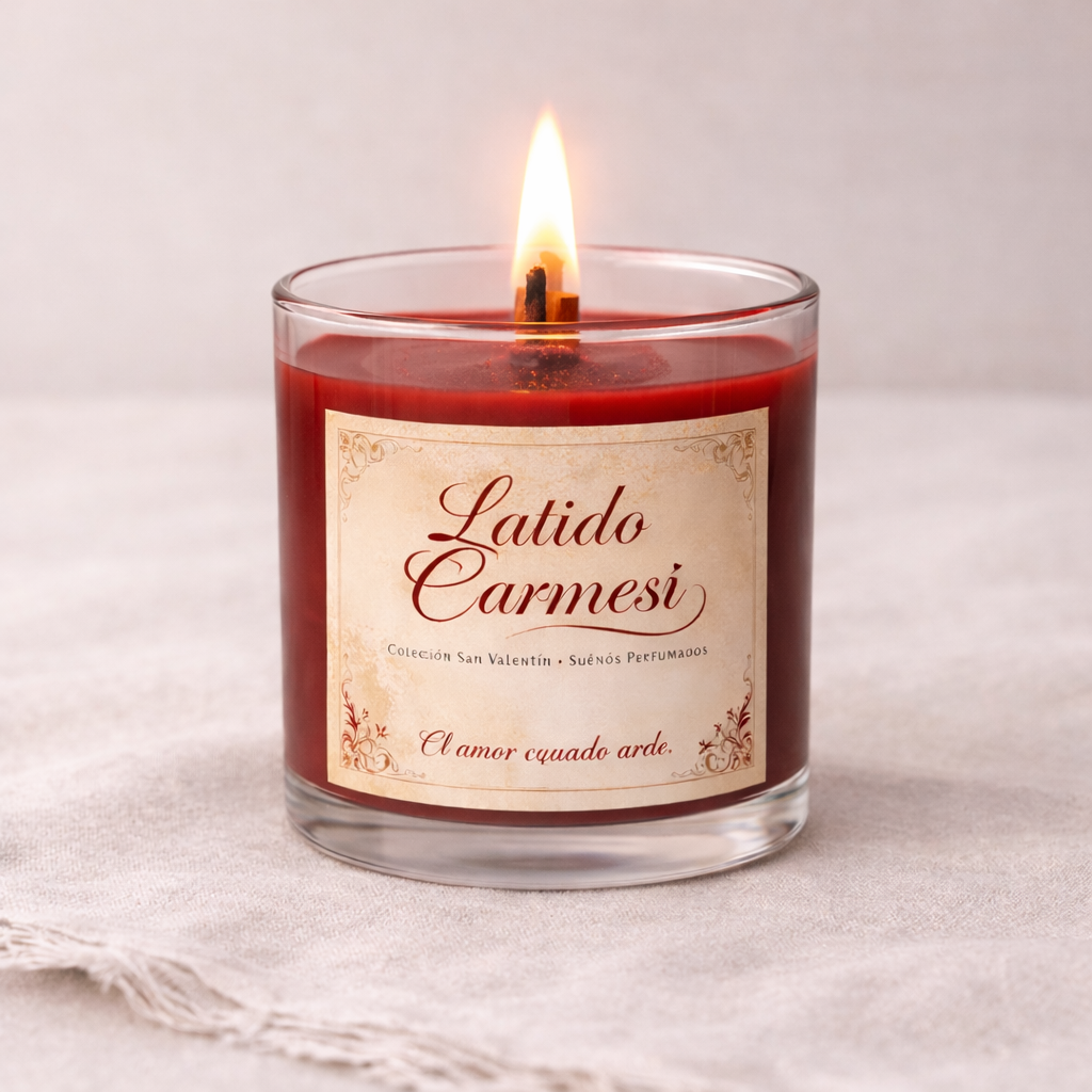 Latido Carmesí es una vela intensa y envolvente, creada para momentos en los que el amor late más despacio… pero más profundo.