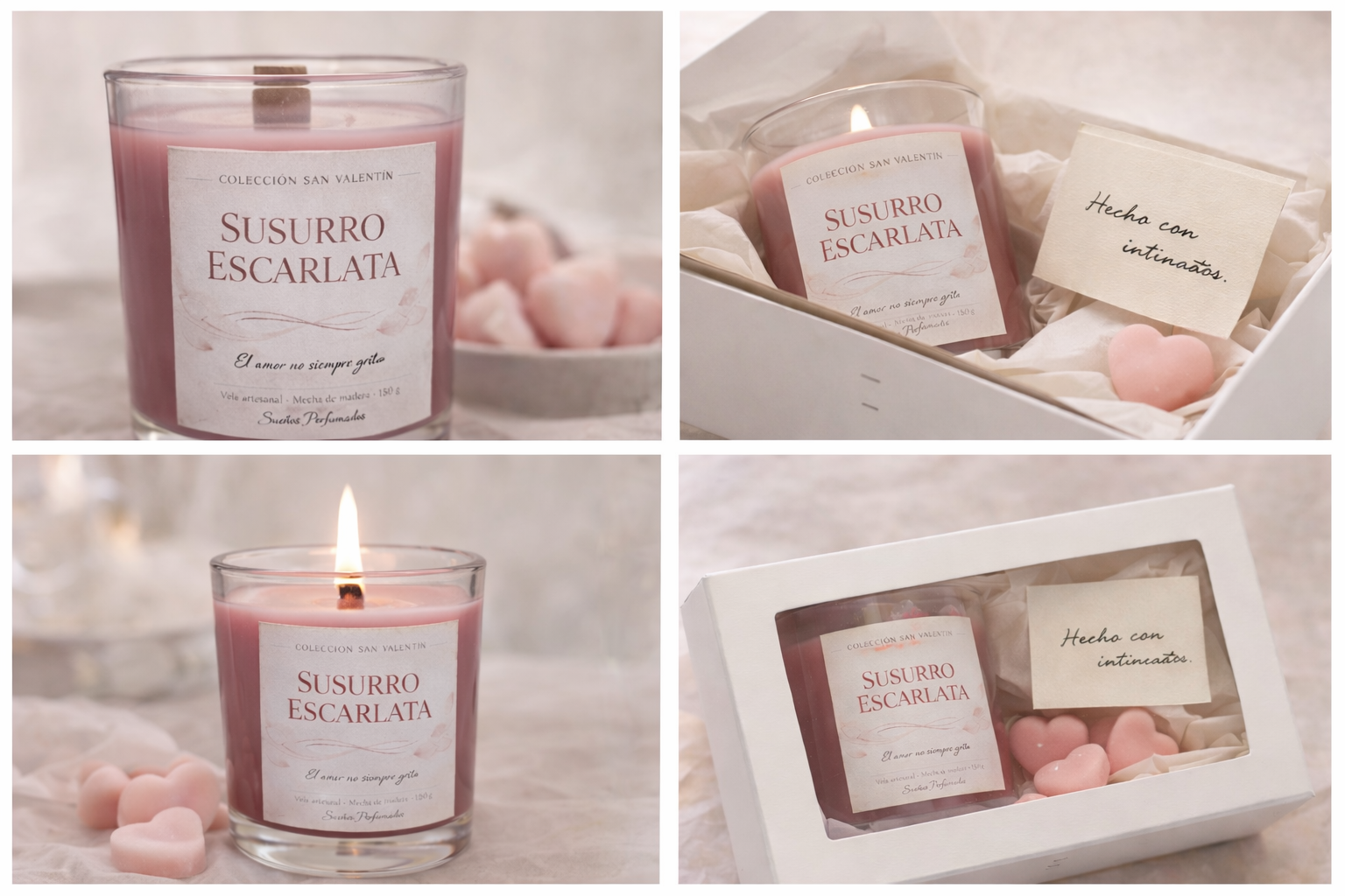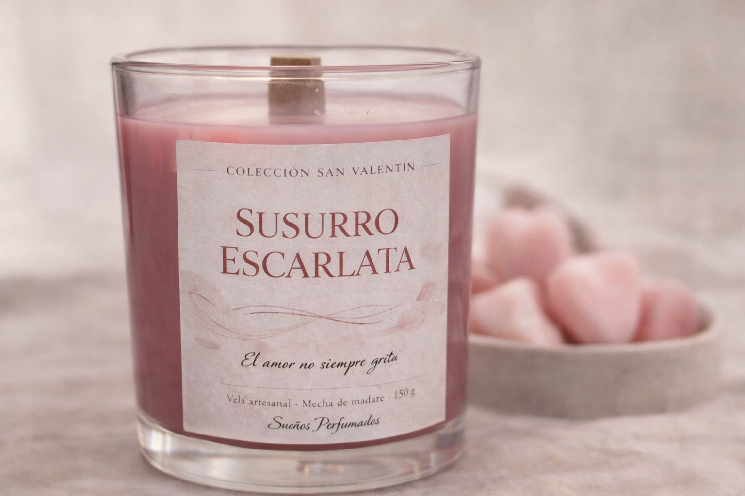 Susurro Escarlata es una vela creada para esos momentos en los que el silencio también dice algo. Una fragancia envolvente, cálida y delicada, pensada para acompañar instantes íntimos, pausados y profundamente emocionales.